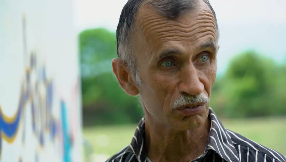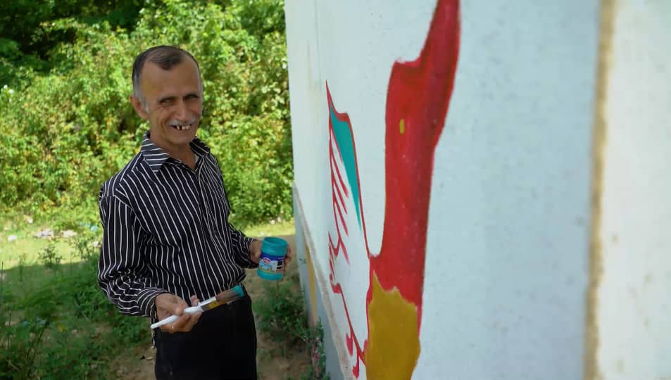 مردی از جنس رنگ و روشنایی با غباری از غم و سرگشتگی. خشم بر قلم می لغزد و باور روی دیوارها خاطره می آفریند.